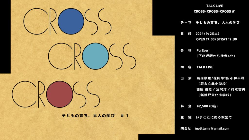 【TALK LIVE】CROSS×CROSS×CROSS #1テーマ:子どもの育ち、大人の学びーーーーーーーーーーーーーーーーーーーーーーーーーーーーー... powered by Peatix : More than a ticket.