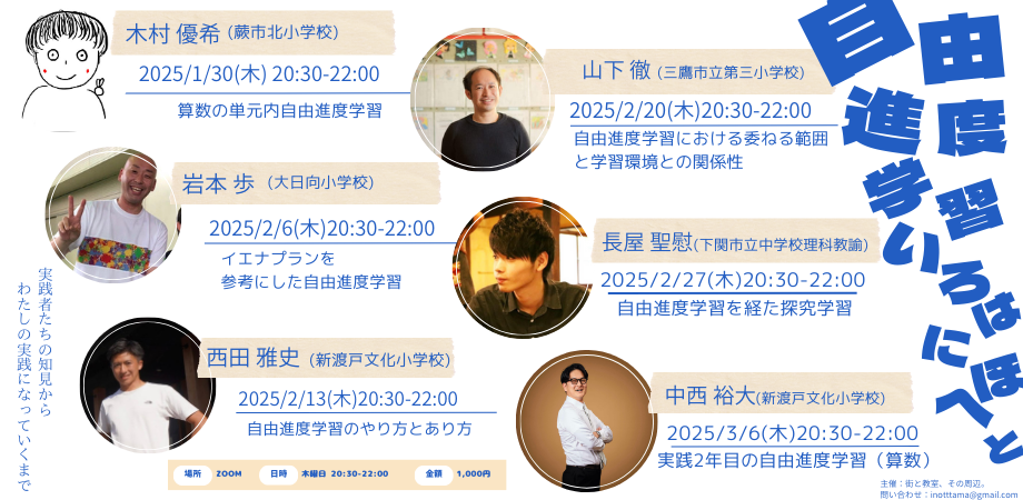 この会を通して、自由進度学習とは何かを考えることで、「わたしの実践」に一歩でも近づく機会になれば幸いです。
